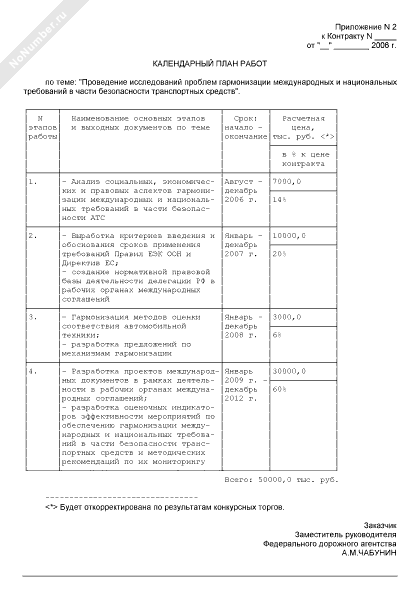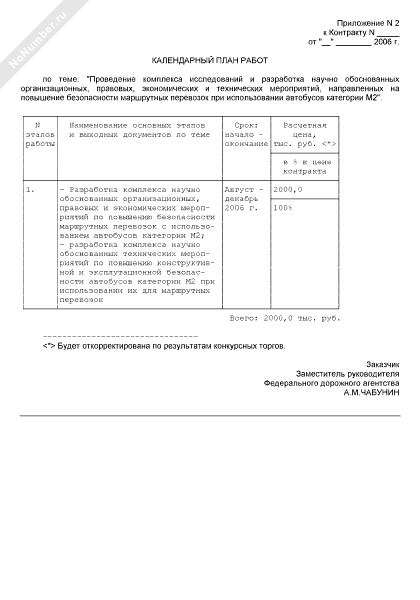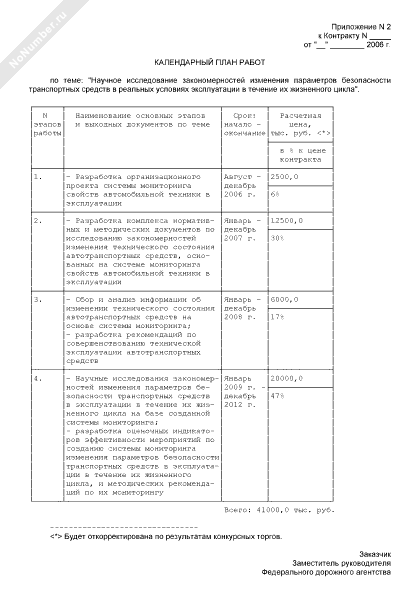 - 90Календарный план работ (приложение к государственному контракту на выполнение НИОКР (поставку готовой научно-технической продукции по теме: «Проведение комплекса исследований и разработка научно обоснованных организационных, правовых, экономических и технических мероприятий, направленных на повышение безопасности маршрутных перевозок при использовании автобусов категории М2»))