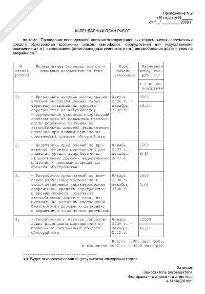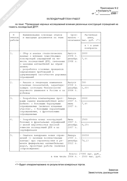- 92Календарный план работ (приложение к государственному контракту на выполнение НИОКР (поставку готовой научно-технической продукции по теме: «Проведение научных исследований влияния различных конструкций дорожных ограждений на тяжесть последствий дорожно-транспортных происшествий»))