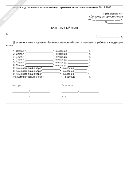 - 86Календарный план выполнения работ авторами для выполнения поручения издательства (приложение к авторскому договору заказа на создание мультимедиа-продукта)