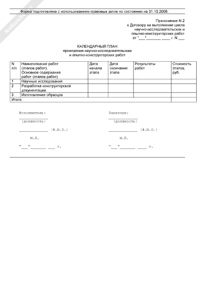 Календарный план (приложение к договору на выполнение цикла научно-исследовательских и опытно-конструкторских работ)