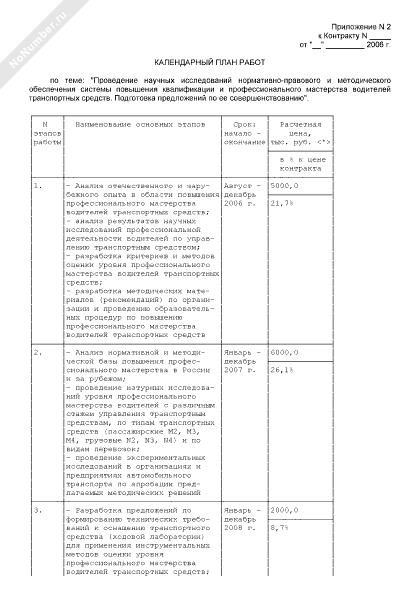 Календарный план работ (приложение к государственному контракту на выполнение НИОКР (поставку готовой научно-технической продукции по теме: «Проведение научных исследований нормативно-правового и методического обеспечения системы повышения квалификации и профессионального мастерства водителей транспортных средств. Подготовка предложений по ее совершенствованию»))