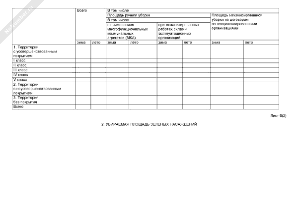 Хозяйственно-финансовый план службы заказчика административного округа. Сведения по уборочной площади (лист 6)
