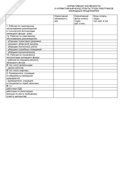 Хозяйственно-финансовый план службы заказчика административного округа. Нормативная численность и нормативный фонд оплаты труда работников жилищных предприятий (лист 7)