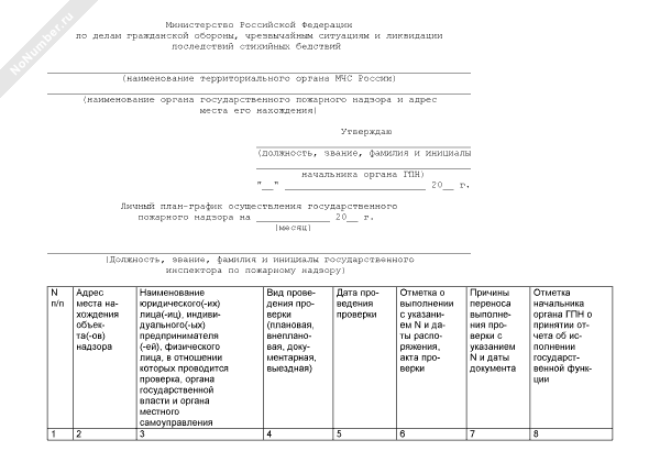 Личный план-график осуществления государственного пожарного надзора (рекомендуемый образец заполнения)