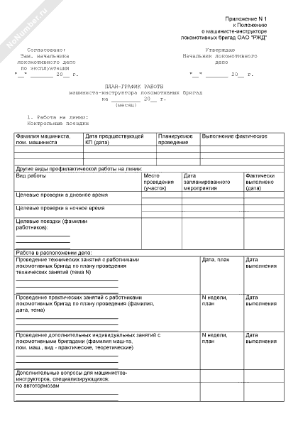 Календарный план-график ремонта перегрузочных машин (форма № 1)