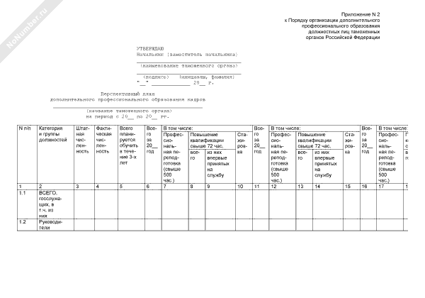 Перспективный план дополнительного профессионального образования кадров таможенных органов Российской Федерации (рекомендуемый образец заполнения)
