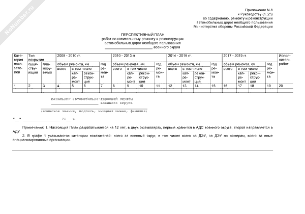 Перспективный план работ по капитальному ремонту и реконструкции автомобильных дорог необщего пользования военного округа (рекомендуемый образец заполнения)