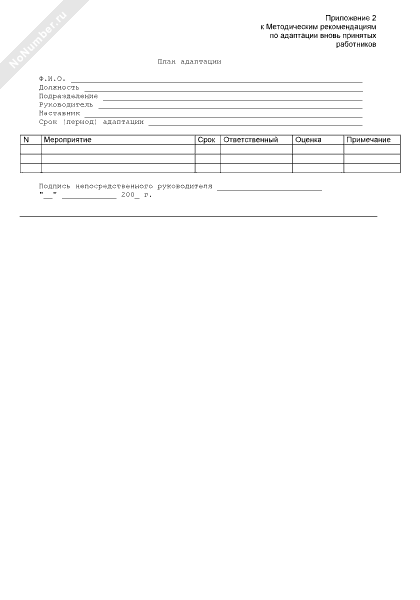 План адаптации работников, вновь принятых в структурные подразделения территориальных органов Пенсионного фонда Российской Федерации (рекомендуемый образец заполнения)