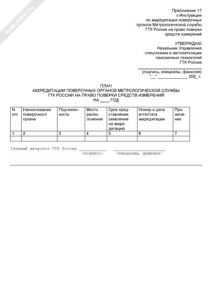 План аккредитации поверочных органов метрологической службы Государственного таможенного комитета России на право поверки средств измерений в сфере обороны и безопасности Российской Федерации (рекомендуемый образец заполнения)