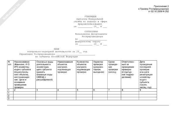 План контрольно-надзорной деятельности Управления Росприроднадзора по субъекту Российской Федерации (рекомендуемый образец заполнения)
