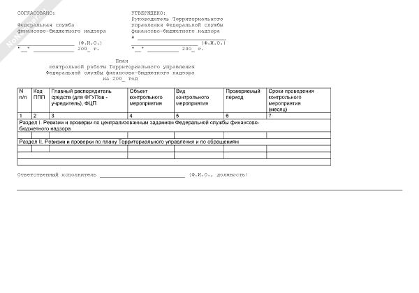 План контрольной работы территориального управления Федеральной службы финансово-бюджетного надзора (рекомендуемый образец заполнения)