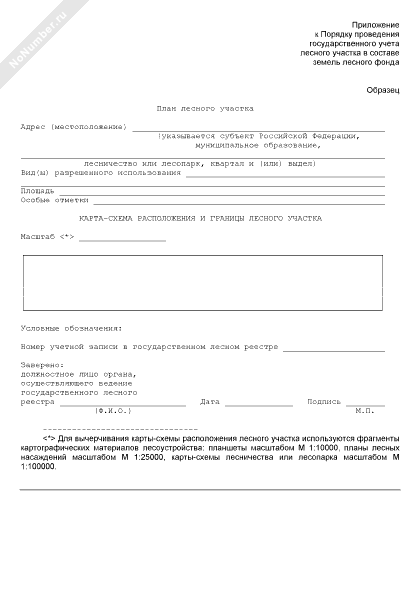 План лесного участка субъекта Российской Федерации (рекомендуемый образец заполнения)