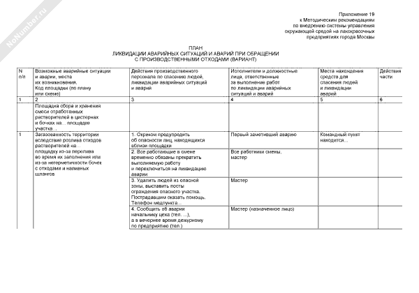 План ликвидации аварийных ситуаций и аварий при обращении с производственными отходами на лакокрасочных предприятиях города Москвы (вариант)
