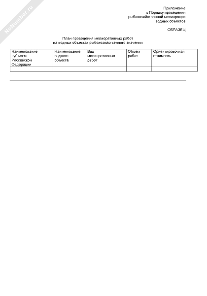 План проведения мелиоративных работ на водных объектах рыбохозяйственного значения (рекомендуемый образец заполнения)