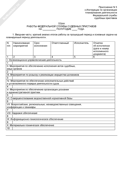 План работы Федеральной службы судебных приставов на полугодие
