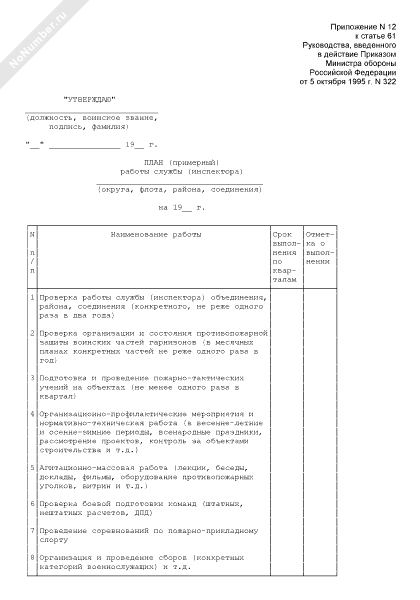 План (примерная форма) работы службы (инспектора) округа (флота, района, соединения)