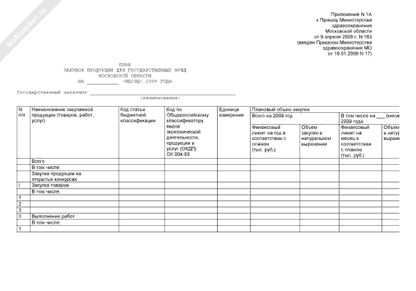 План закупок продукции для государственных нужд Московской области на 2009 год (рекомендуемый образец заполнения)