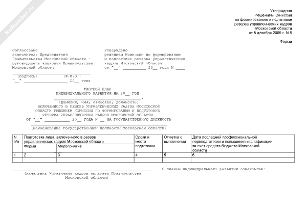 Типовой план индивидуального развития, включенного в резерв управленческих кадров Московской области решением комиссии по формированию и подготовке резерва управленческих кадров Московской области на государственную должность (рекомендуемый образец заполнения)