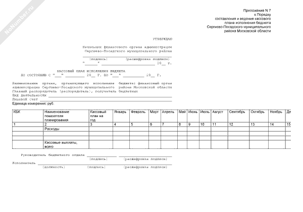 Утвержденный кассовый план исполнения бюджета Сергиево-Посадского муниципального района Московской области (рекомендуемый образец заполнения)