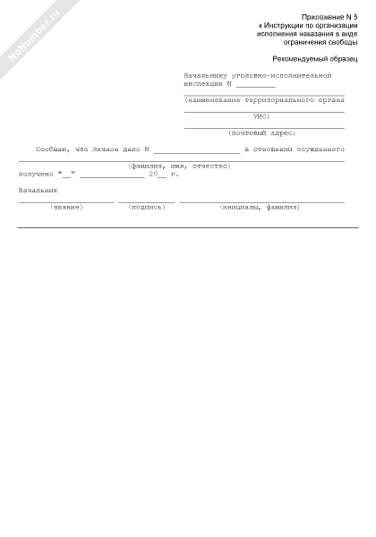Подтверждение о получении личного дела осужденного, изменившего место жительства (работы) из другой инспекции (рекомендуемый образец заполнения)