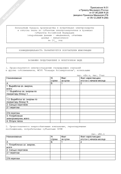 - Источник– Приказ Минэнерго РФ от 07.08.2008 № 20 (редакция от 09.12.2008 № 256)