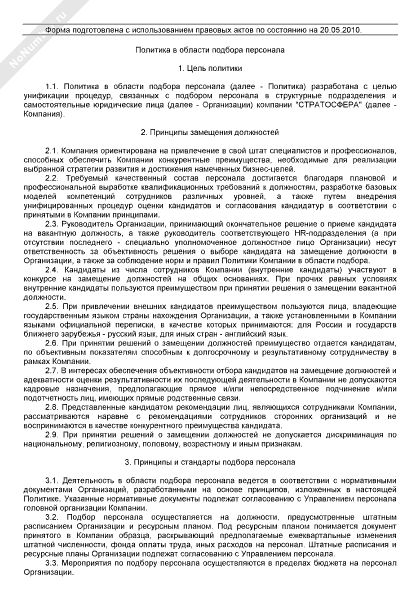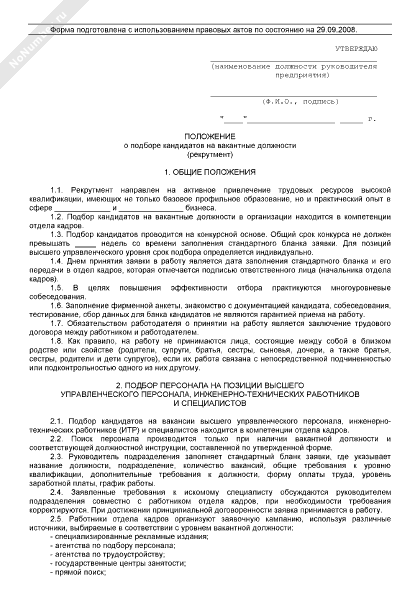 - 104Положение о подборе кандидатов на вакантные должности (рекрутмент)