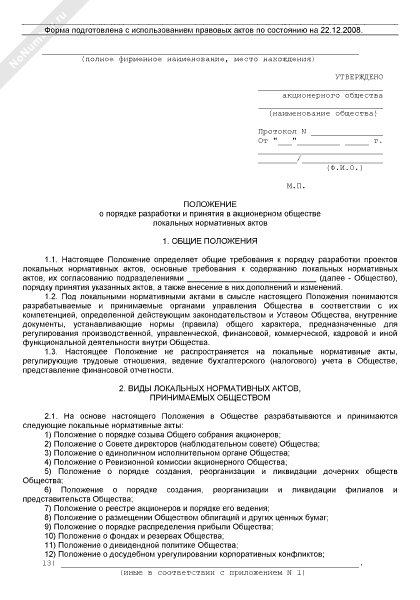 - 106Положение о порядке разработки и принятия в акционерном обществе локальных нормативных актов
