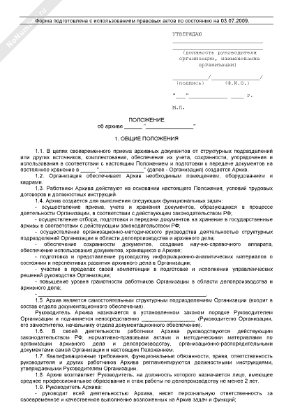 Положение об архиве