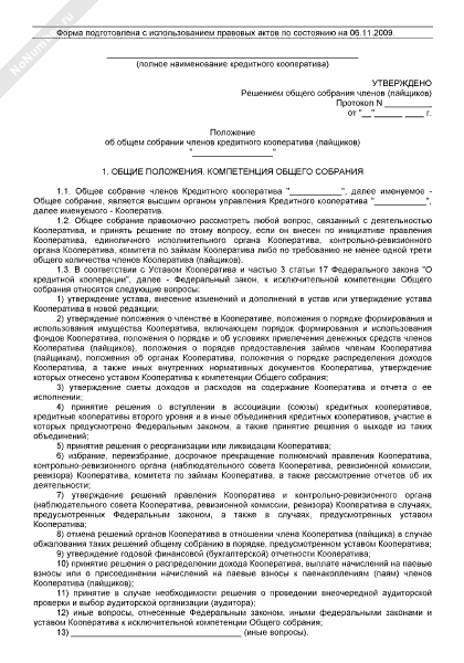 Положение об общем собрании членов кредитного кооператива (пайщиков)