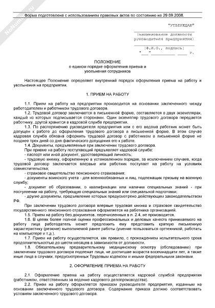 Положение о едином порядке оформления приема и увольнения сотрудников