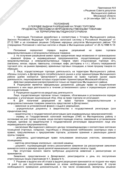Положение о порядке выдачи разрешений на право торговли продовольственными и непродовольственными товарами на территории Мытищинского района (рекомендуемый образец заполнения)