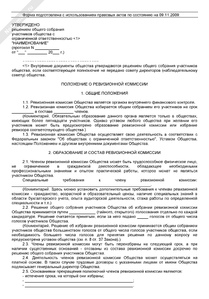 Положение о ревизионной комиссии общества с ограниченной ответственностью (рекомендуемый образец заполнения)