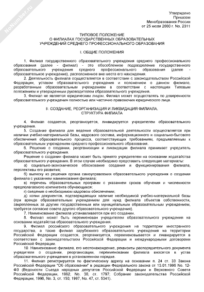 - Источник– Приказ Минобразования РФ от 25.07.2000 № 2311