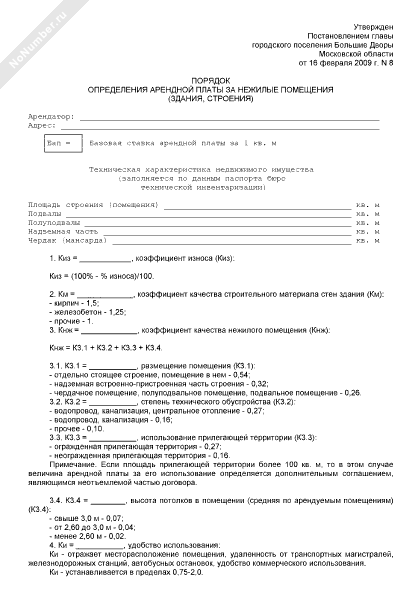 - 32Порядок определения арендной платы за нежилые помещения (здания, строения) на территории городского поселения Большие Дворы Московской области