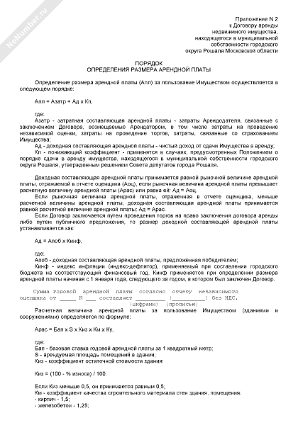 - 29Порядок определения размера арендной платы (приложение к договору аренды недвижимого имущества, находящегося в муниципальной собственности городского округа Рошаля Московской области)