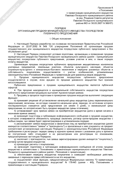 - 38Порядок организации продажи муниципального имущества Павлово-Посадского муниципального района без объявления цены