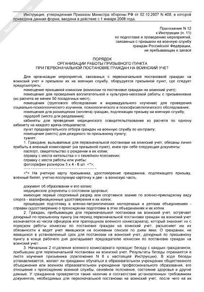 - 40Порядок организации работы призывного пункта при первоначальной постановке граждан на воинский учет