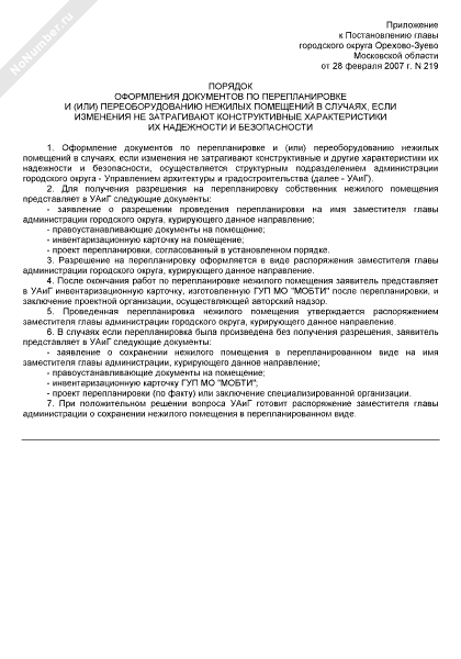 - 50Порядок оформления документов по перепланировке и (или) переоборудованию нежилых помещений на территории городского округа Орехово-Зуево Московской области в случаях, если изменения не затрагивают конструктивные характеристики их надежности и безопасности