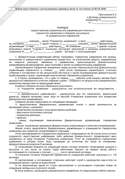 - 54Порядок предоставления доверительным управляющим отчетности учредителю управления и передачи ему доходов от доверительного управления (приложение к договору доверительного управления имуществом для организации парк-отеля)
