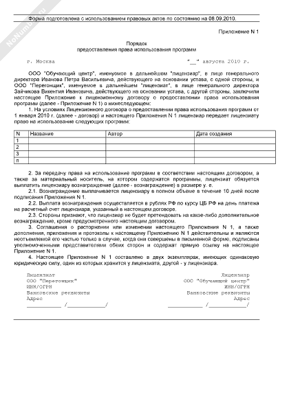 - 57Порядок предоставления права использования программ (приложение к лицензионному договору о предоставлении права использования программ обучения)