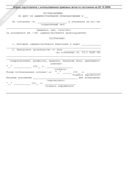 Постановление по делу об административном правонарушении