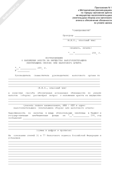Постановление о наложении ареста на имущество налогоплательщика (плательщика сборов) или налогового агента