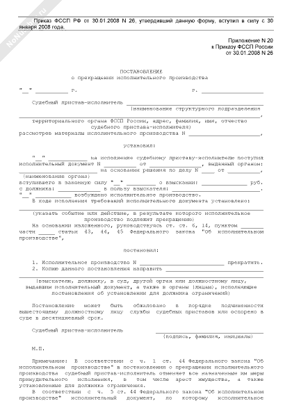 - Источник– Приказ ФССП РФ от 30.01.2008 № 26