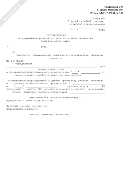 Постановление о прекращении розыскного дела по розыску имущества должника-организации (рекомендуемый образец заполнения)
