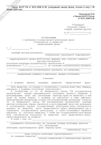 - Источник– Приказ ФССП РФ от 30.01.2008 № 26