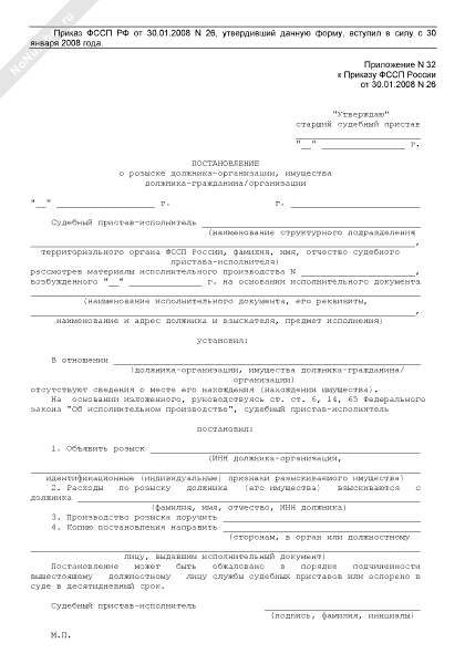 - Источник– Приказ ФССП РФ от 30.01.2008 № 26