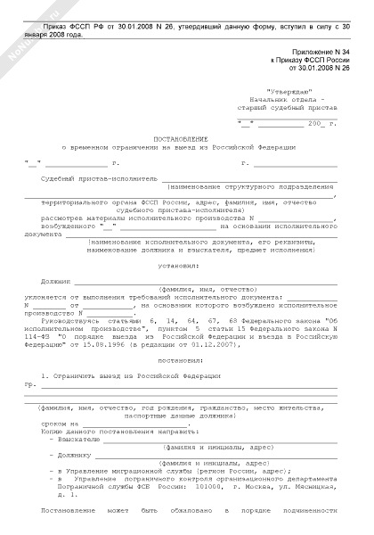 - Источник– Приказ ФССП РФ от 30.01.2008 № 26