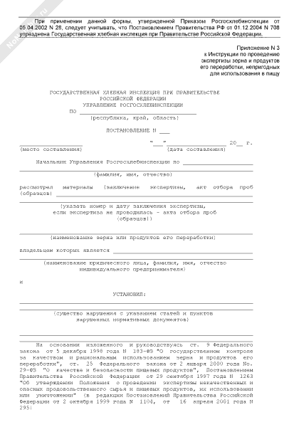 - Источник– Приказ Росгосхлебинспекции от 05.04.2002 № 28