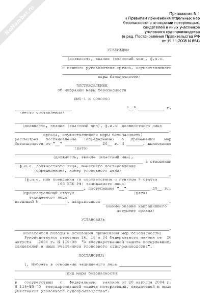 Постановление об избрании меры безопасности в отношении потерпевших, свидетелей и иных участников уголовного судопроизводства. Форма № ПМБ-1 (рекомендуемый образец заполнения)