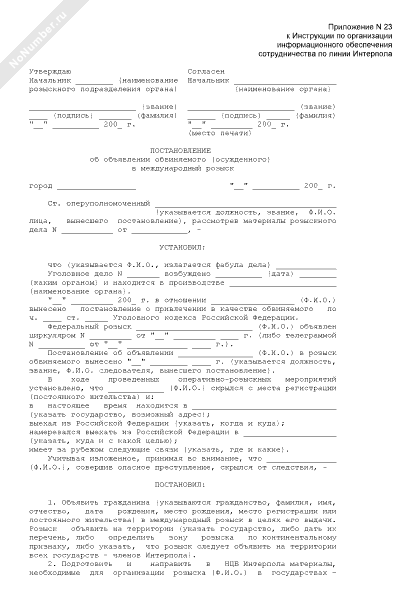 Постановление об объявлении обвиняемого (осужденного) в международный розыск (по каналам Интерпола)